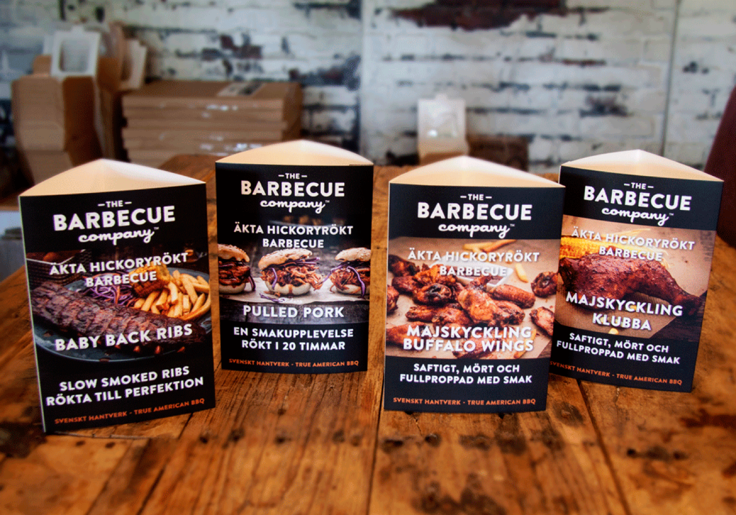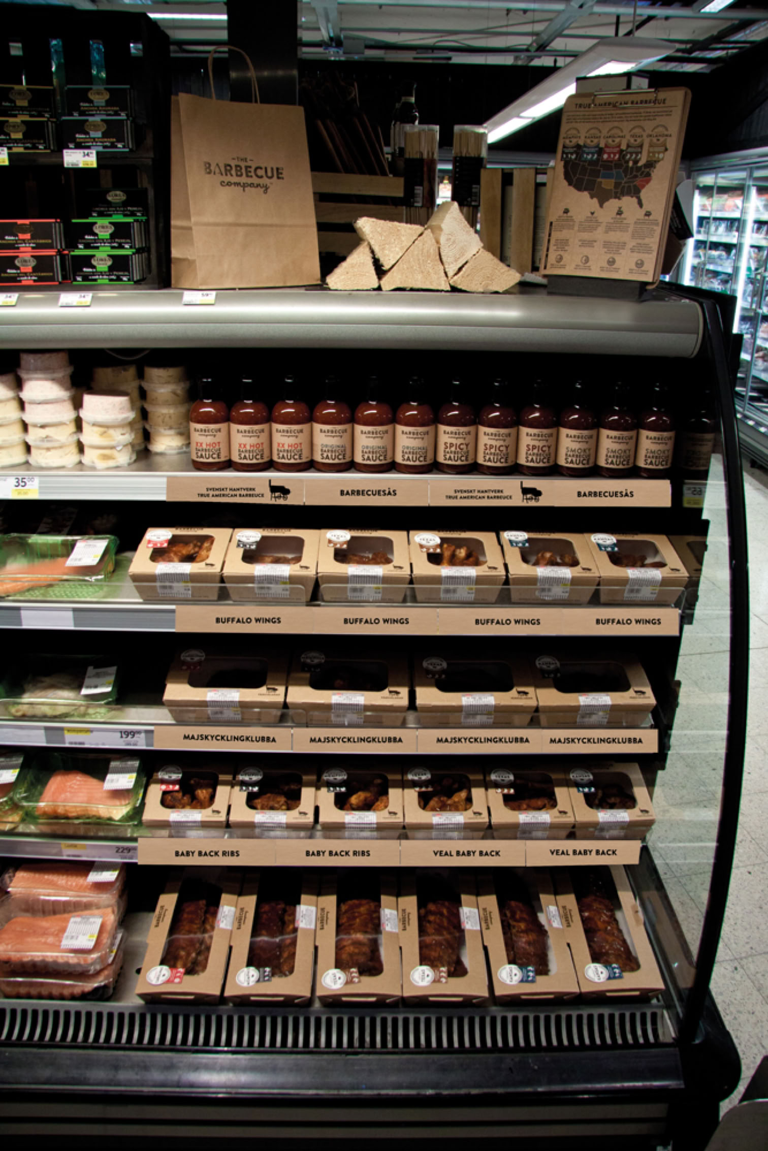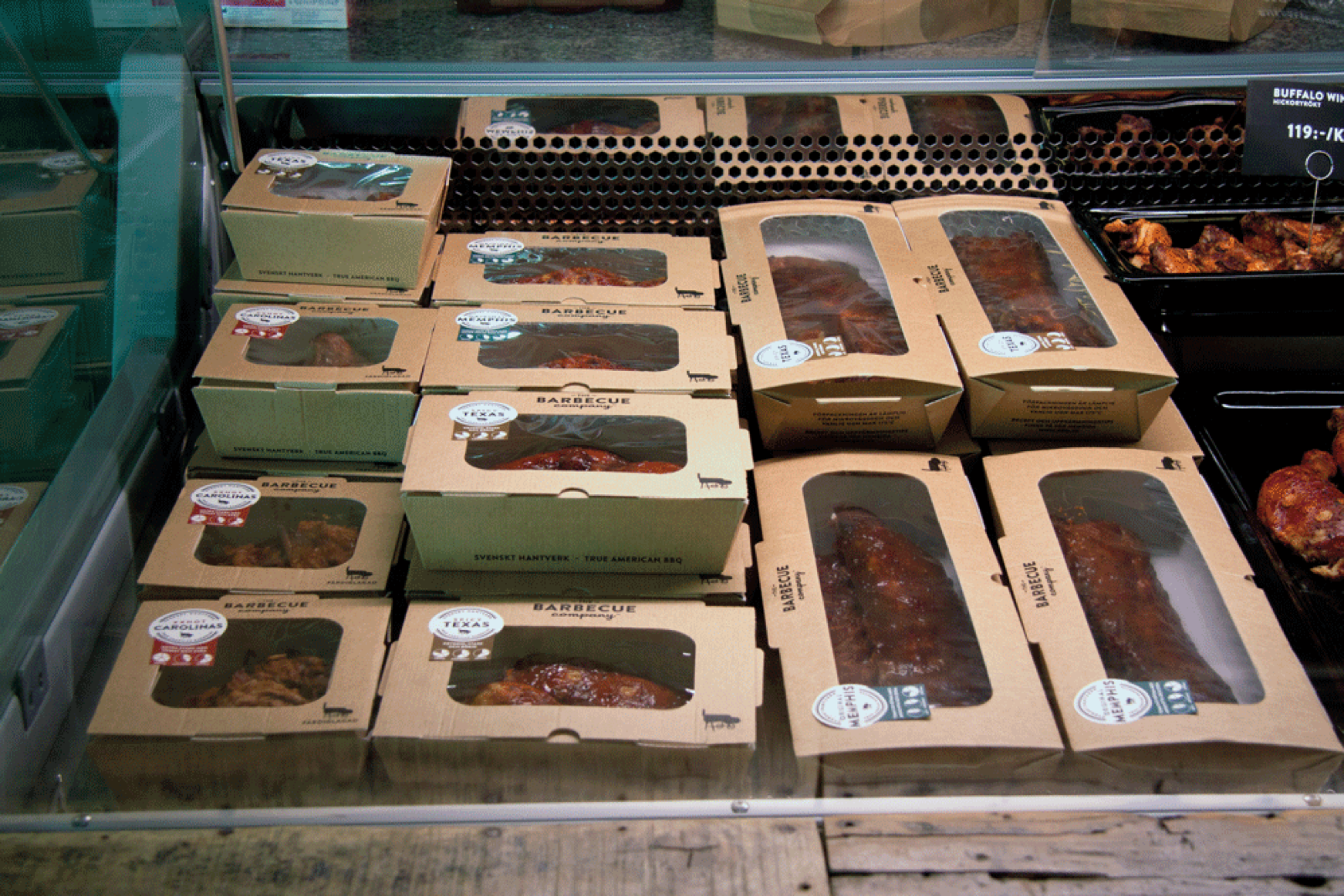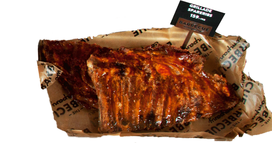 Vårt eget vaxade papper för exponering av våra barbeceuprodukter i delin.