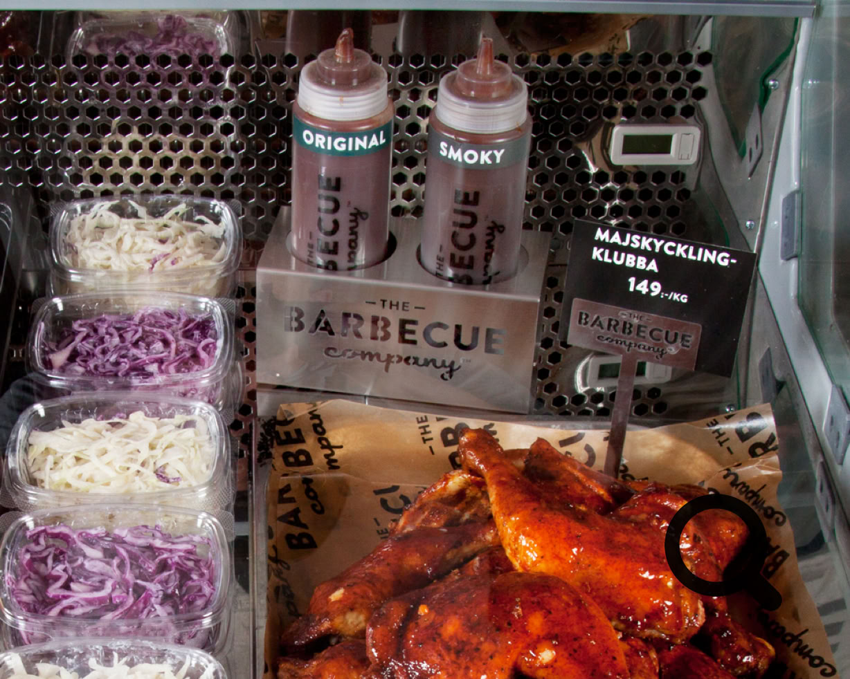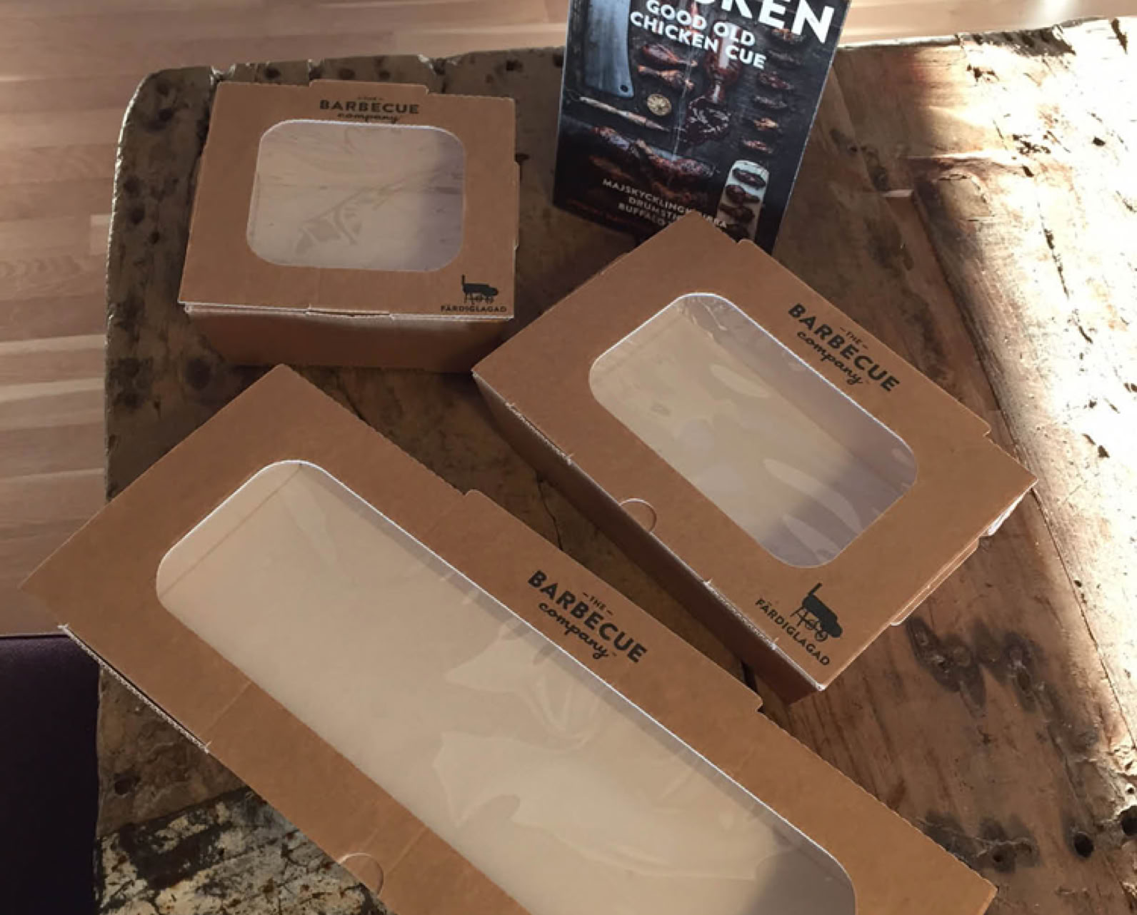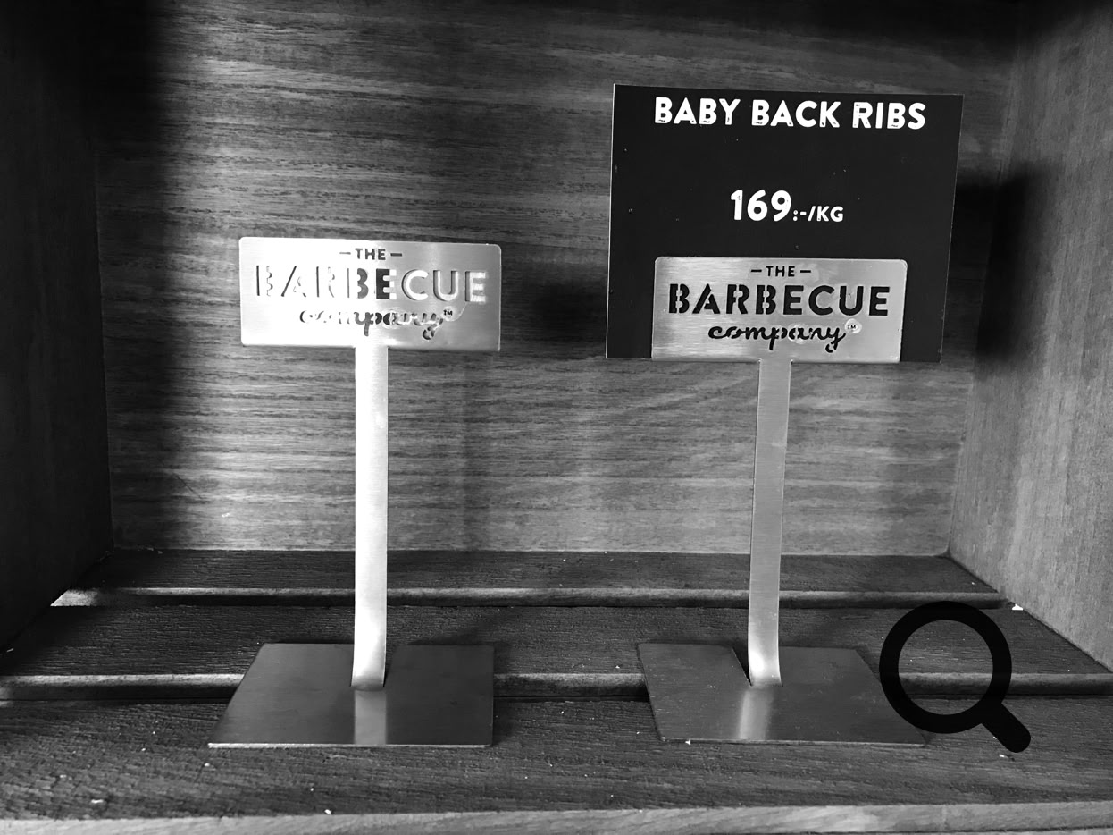 Vårt eget vaxade papper för exponering av våra barbeceuprodukter i delin.