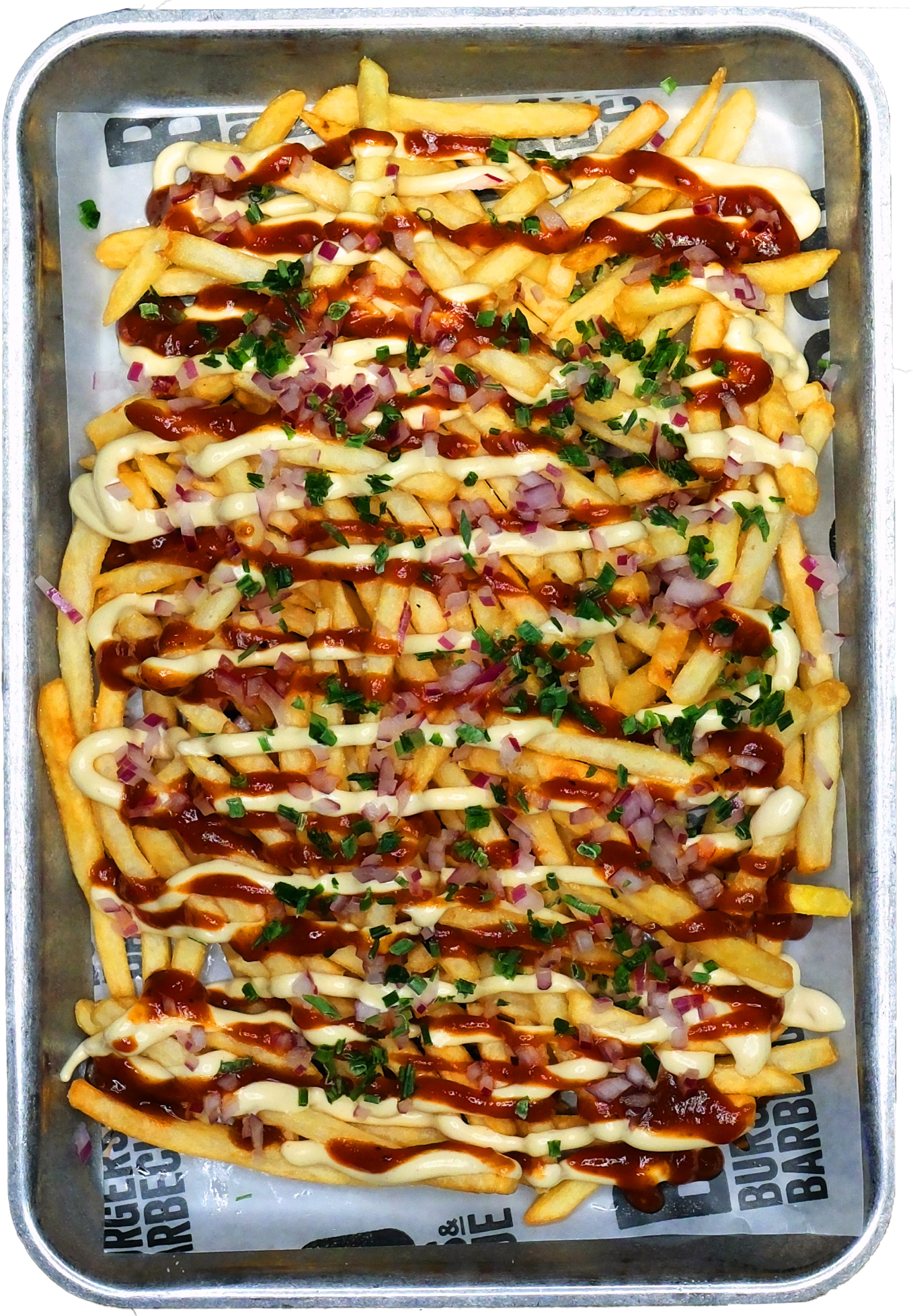 Add barbecue sauce with mayonnaise to fries and you get really good fries, use equal amounts of barbecue sauce and mayonnaise. So good that you want it every time