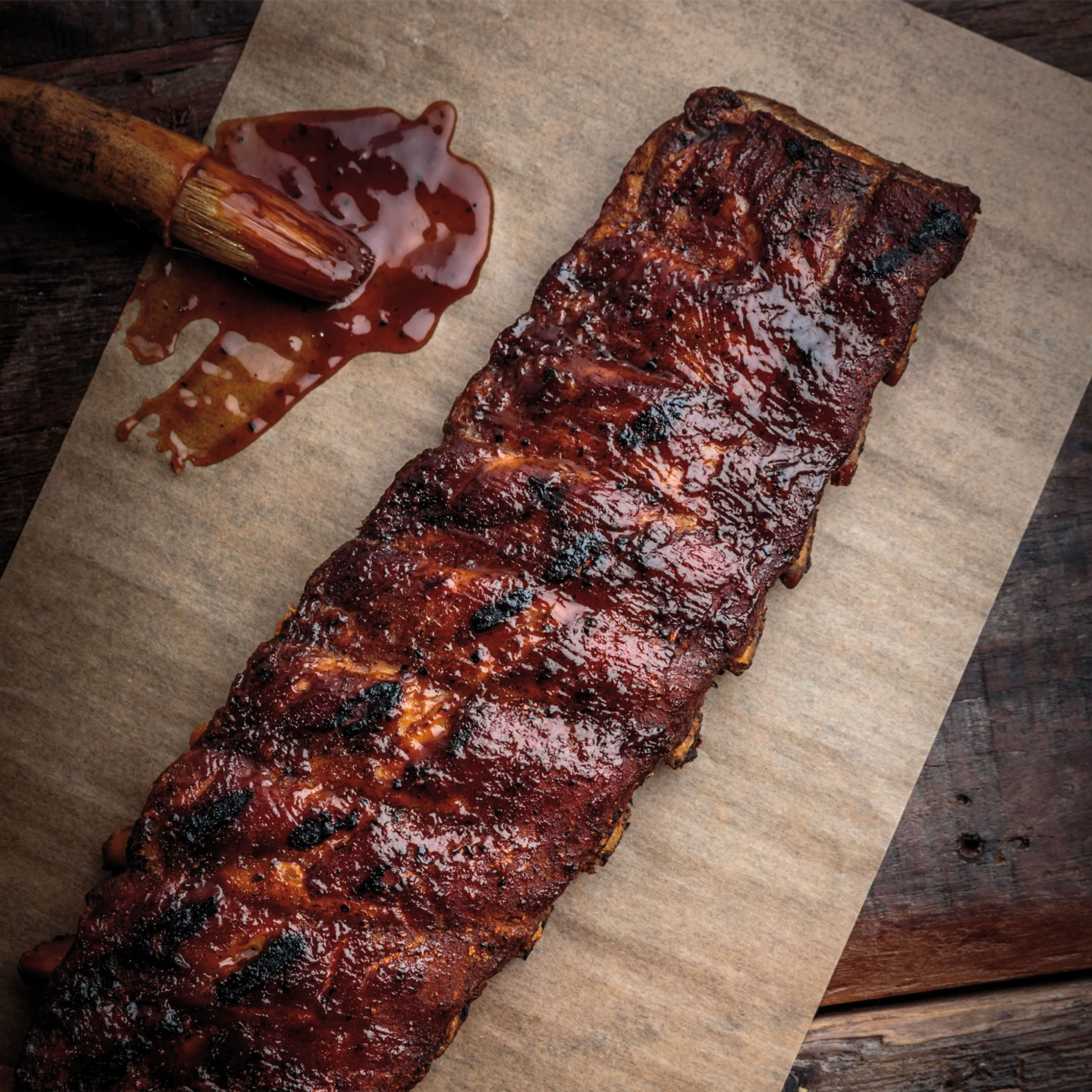 Als Glasur für Rippchen verwenden: Die Rippchen vorbereiten, sobald sie verzehrfertig sind, mit Barbecue-Sauce bestreichen und mit der Saucenseite nach unten zur Holzkohle hin für etwa 30-50 Sekunden auf den Grill legen.